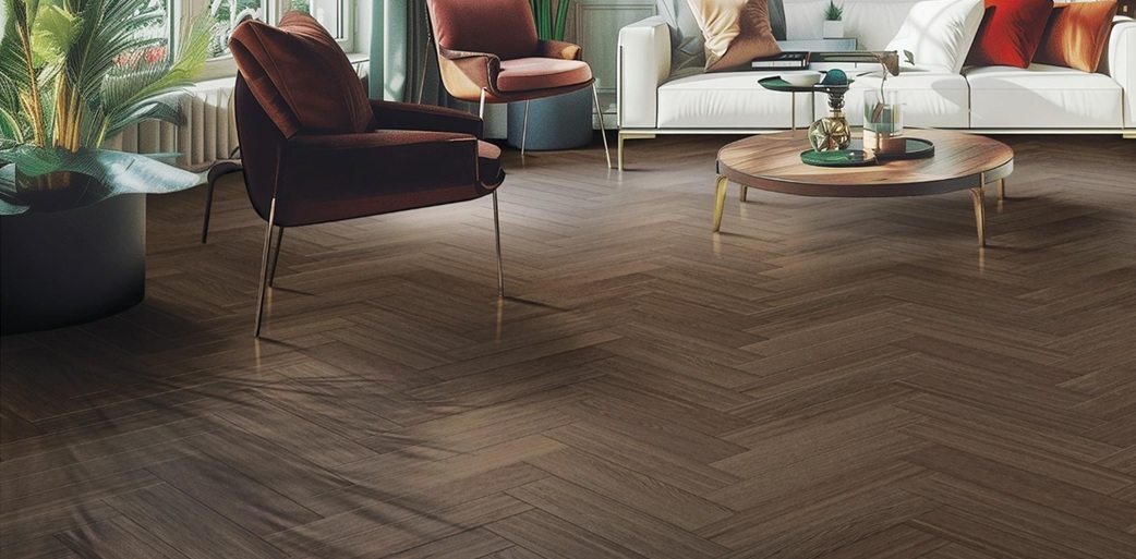 Ice Brown je teplý, medený odtieň hnedej, ktorý vyžaruje prírodný charakter a dodáva interiéru jedinečné čaro. jeho jemné medené odtiene zdôrazňujú štruktúru dreva, vytvárajú útulnú atmosféru a pocit tepla. Ice Brown podlaha dokonale ladí s drevenými dekoračnými prvkami a neutrálnymi farbami, čím vnáša do priestoru harmóniu a výrazný akcent. Usporiadanie dosiek do vzoru rybej kosti ešte viac umocňuje eleganciu tohto odtieňa.